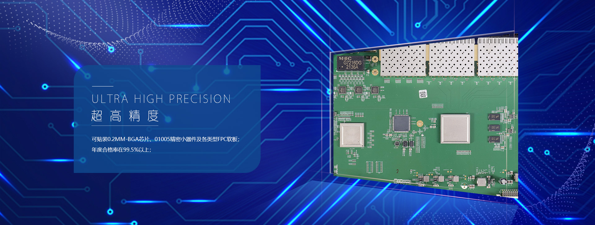 可貼裝0.2MM-BGA芯片、01005精密小器件及各類型FPC軟板,公司具備完備的質量體系和行業所需全面的檢驗設備,年度合格率統計均在99.5%以上。